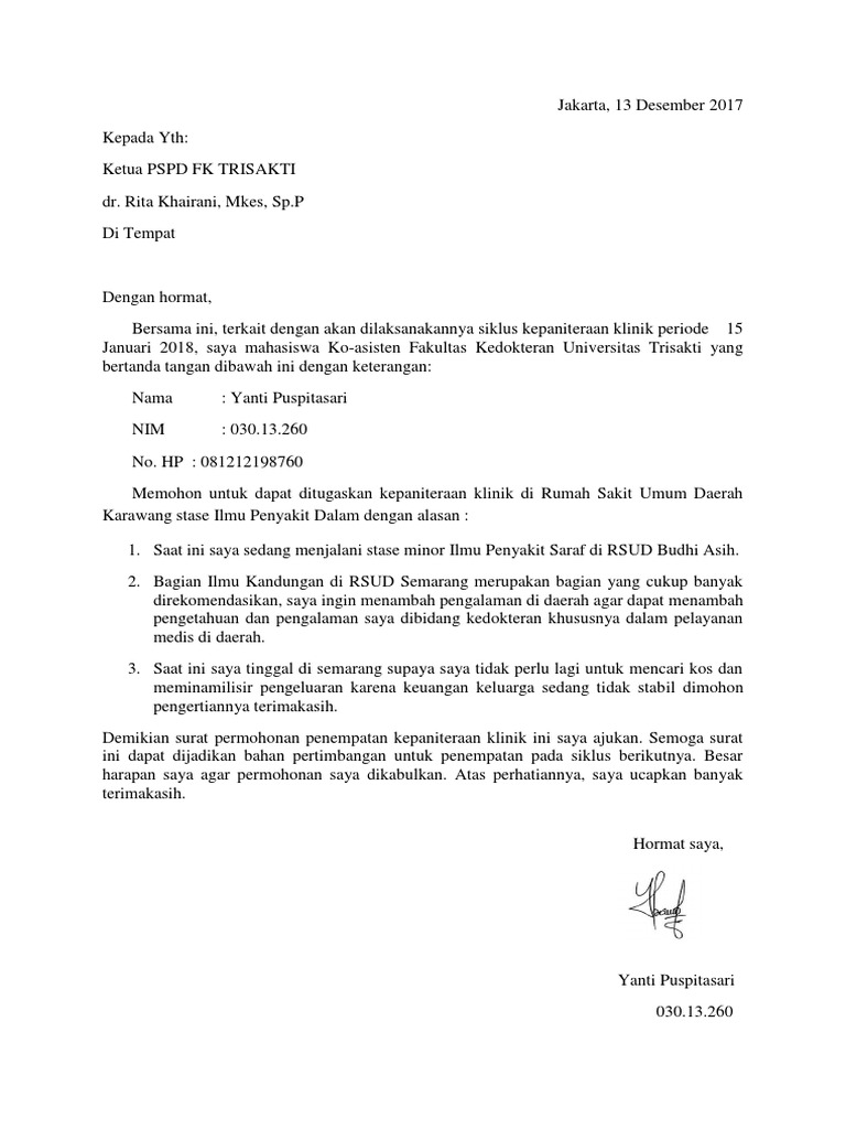 Surat Permohonan Penempatan Koas Pdf